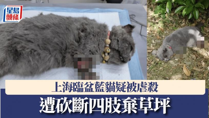 百萬粉絲博主「上海領養之家」周五(25日)發文稱,上海市浦東新區蓮溪路地鐵站附近草坪上,發現一隻藍貓疑遭受虐待被砍斷四肢,送院搶救後死亡。