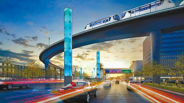 洛杉磯國際機場旅客捷運系統示意圖,該系統最終將與地鐵站連結。洛杉磯世界機場