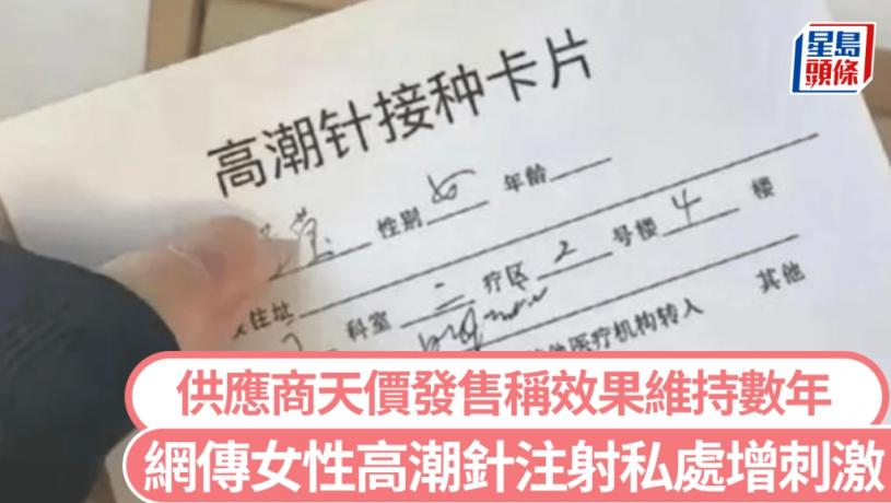 4月27日,詞條「高潮針是什麼」登上熱搜,網傳「高潮針在多地爆滿,通過陰道注射幫助女性性高潮」。內地紅星新聞報道,一名婦產科醫生表示,所謂的敏感點位功能存在爭議,注射原理沒有大規模臨床研究支持;這類注射可能有感染、神經損傷等風險。
