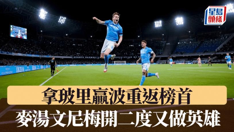 拿玻里在周日意甲主場2:0擊敗拖連奴,並把握國際米蘭同日作客0:1不敵羅馬,成功壓過藍黑軍團重返榜首,最後4輪取得3勝1和就肯定可以封王。該隊的贏波功臣,又是狀態火熱的中場麥湯文尼,這名曼聯棄將今仗包辦兩個入球,本季意甲已累積11球,生涯首度於單季聯賽有雙位數入球。