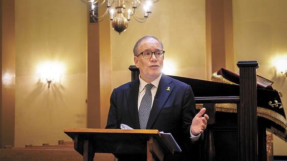 他批評,更糟的是柯謨在2023年10月7日哈馬斯對以色列發動恐怖攻擊後,沒有在最黑暗的時刻來到這個社區,「當時超過1200人被恐怖組織哈馬斯殺害,數百名人質被劫持在加沙,但他卻對我們撒了謊。這是自大屠殺以來針對猶太人最嚴重的襲擊,我們心碎了。但在我們最黑暗的時刻,在我們最需要幫助的時候,他向我們兜售了一堆謊言,他以為自己能佔上風,但大家心裡都清楚。」