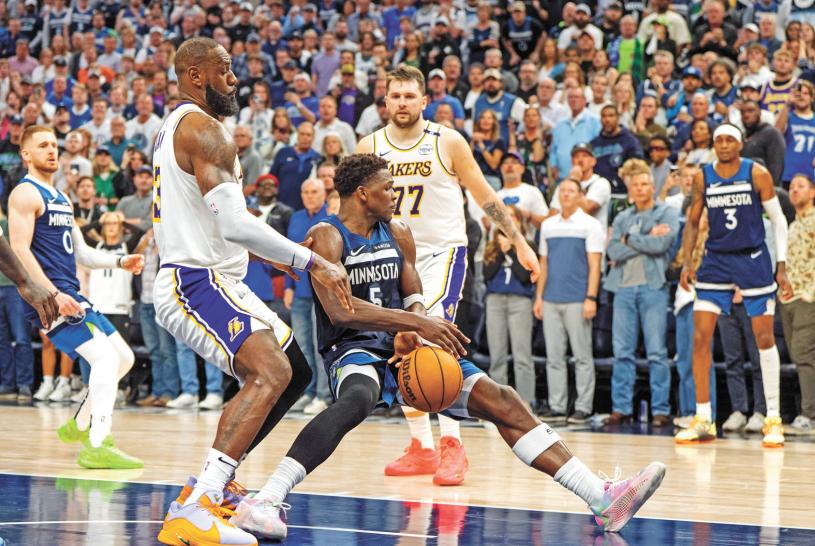 年輕少壯的主隊狀元愛德華茲既有身體又有激情,出場44分鐘,火力全開拿下43分,外帶9籃板、6助攻。再加上中鋒蘭德爾與之相配合攻下25分,森林狼基本仰仗著這兩人,就處於不敗之地。而湖人這邊,東契奇28投13中取下38分,但其他數據平平。詹姆斯表現全面,險些打出三雙數據(27分12籃板8助攻),全力輸出卻功虧一簣。湖人先發球員的表現其實還算正常,里夫斯和八村壘分別挹注23分、17分,可惜替補出場的4人僅得到6分。