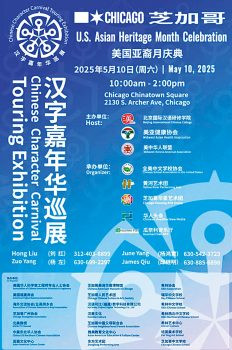 5月10日活動的的漢字嘉年華開幕典禮,由北京國際漢語研修學院、美國華人醫學會、美亞健康協會、美中人民友好協會聯合主辦,並由全美中文學校協會、黃河藝術團、芝加哥華人藝術團共同承辦。屆時,現場將設置漢字展示與互動環節,並有精彩紛呈的傳統藝術表演和特色美食攤位,讓參與者在歡樂的氛圍中體驗中華文化的博大精深,共同慶祝亞裔人士對美國社會的貢獻。