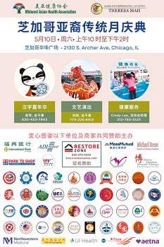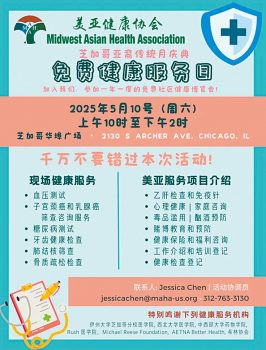 美亞健康協會(MAHA),伊州州議員馬靜儀(Theresa Mah)以及大芝加哥地區70多個組織,和商家共同主辦的2025年亞太裔傳統月,這慶祝活動將於5月10日(周六)上午10時至下午2時在南唐人街華埠廣場隆重舉行。