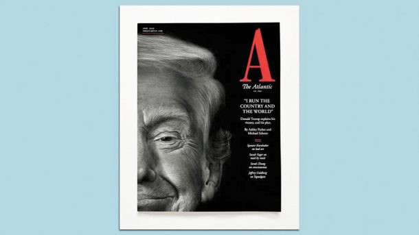 總統特朗普接受《大西洋月刊》專訪表示會爭取第三次執政,但承認這將會十分困難。 《大西洋月刊》封面圖片
