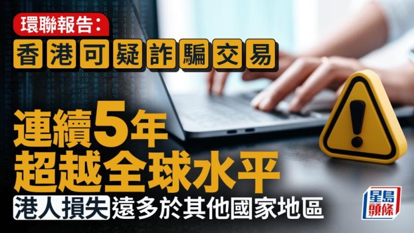 信貸資料服務商環聯發布2025年全渠道詐騙狀況報告指出,2024年源自香港的所有數碼交易中,6.2%為可疑詐騙交易,較全球5.4%的比率為高,並已是2020年發佈相關數據以來,連續5年超越全球水平,反映本港在數碼科技應用越加普及和日趨複雜的行騙手法下,防騙工作持續受到挑戰。