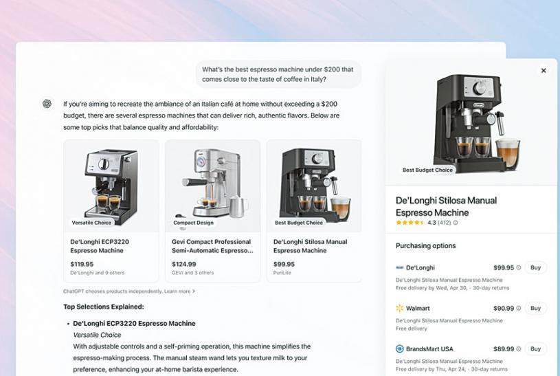 OpenAI之前曾探討透過AI代理人平台Operator進行購物,花上數秒到數分鐘瀏覽數十個網頁為用戶尋找相關產品。利用ChatGPT搜尋引擎購物是一種更快又更實際的體驗,且可讓用戶利用自然語言進行商品搜尋。