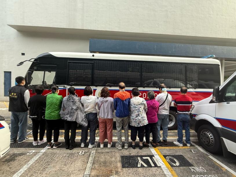 該單位內一名85歲姓黃本地男負責人涉嫌「經營賭博場所」被捕。單位內七名本地女子及三名本地男子,年齡介乎48至83歲,則涉嫌「在賭博場所內賭博」被捕。