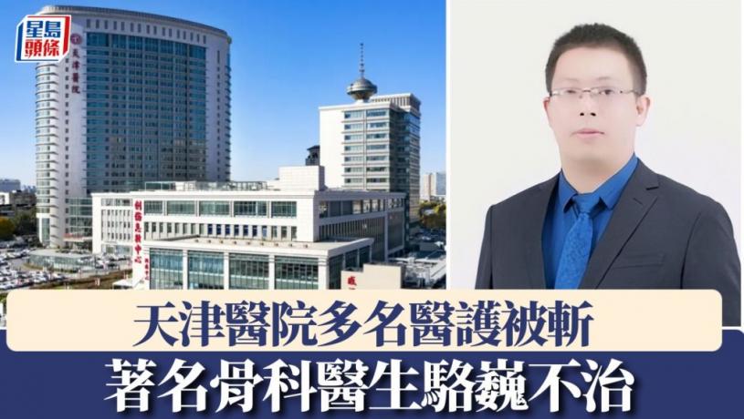 網上消息流傳,一名患者當天持刀來到天津醫院,躲過醫院的安檢,對正在骨科上班的醫護人員揮刀行兇,「一共有6名醫護人員被砍,其中一個醫生的頭顱都被劈開了有四五釐米深的創口,另一個醫護人員的腹部、腸子都被對方亂捅,現場挺亂的。」