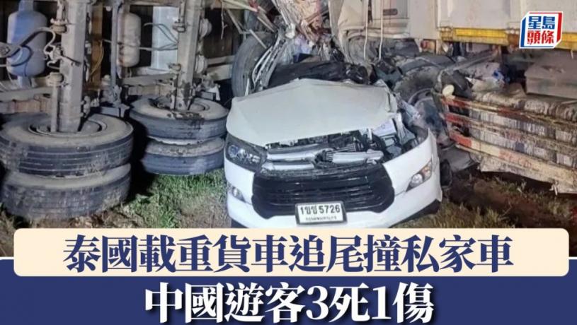 據泰國中文自媒體「泰國之眼」消息,泰國羅勇府發生一起嚴重交通事故,一輛滿載沙子的18輪大卡車在紅燈路口追尾撞上一輛載有中國遊客的轎車,造成3人死亡、1人受傷,肇事司機至今在逃!