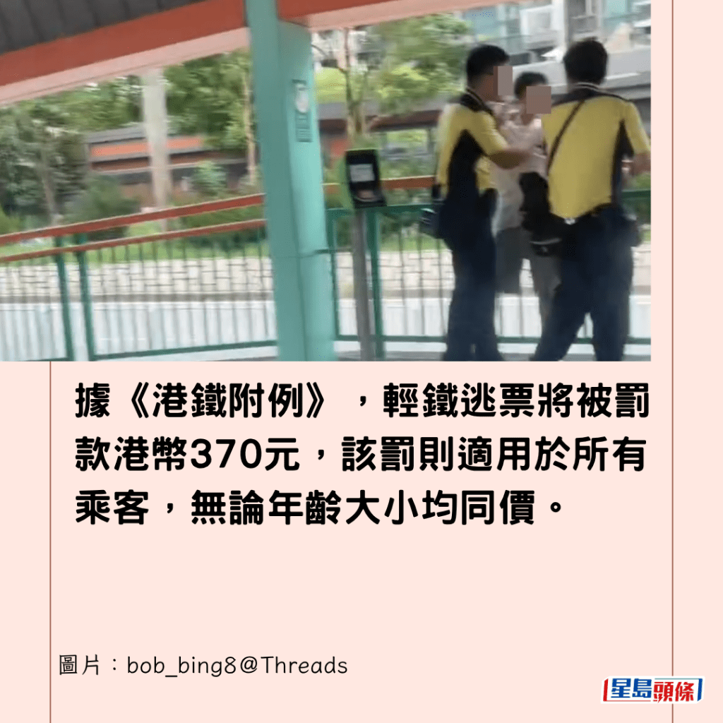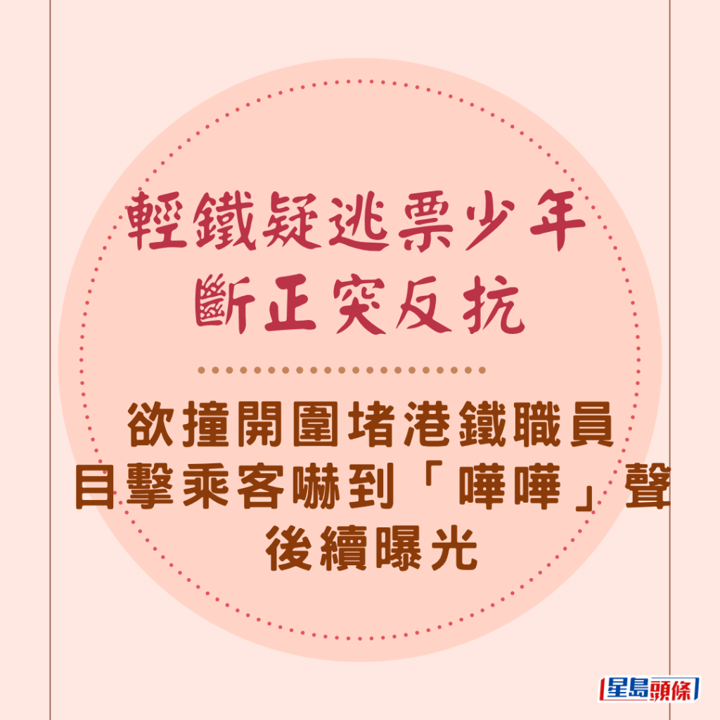 網絡昨日(7日)熱傳有少年搭輕鐵疑逃票,職員截查時曾反抗,欲撞開職員包圍網,目擊乘客感驚訝嚇到「嘩嘩」聲。