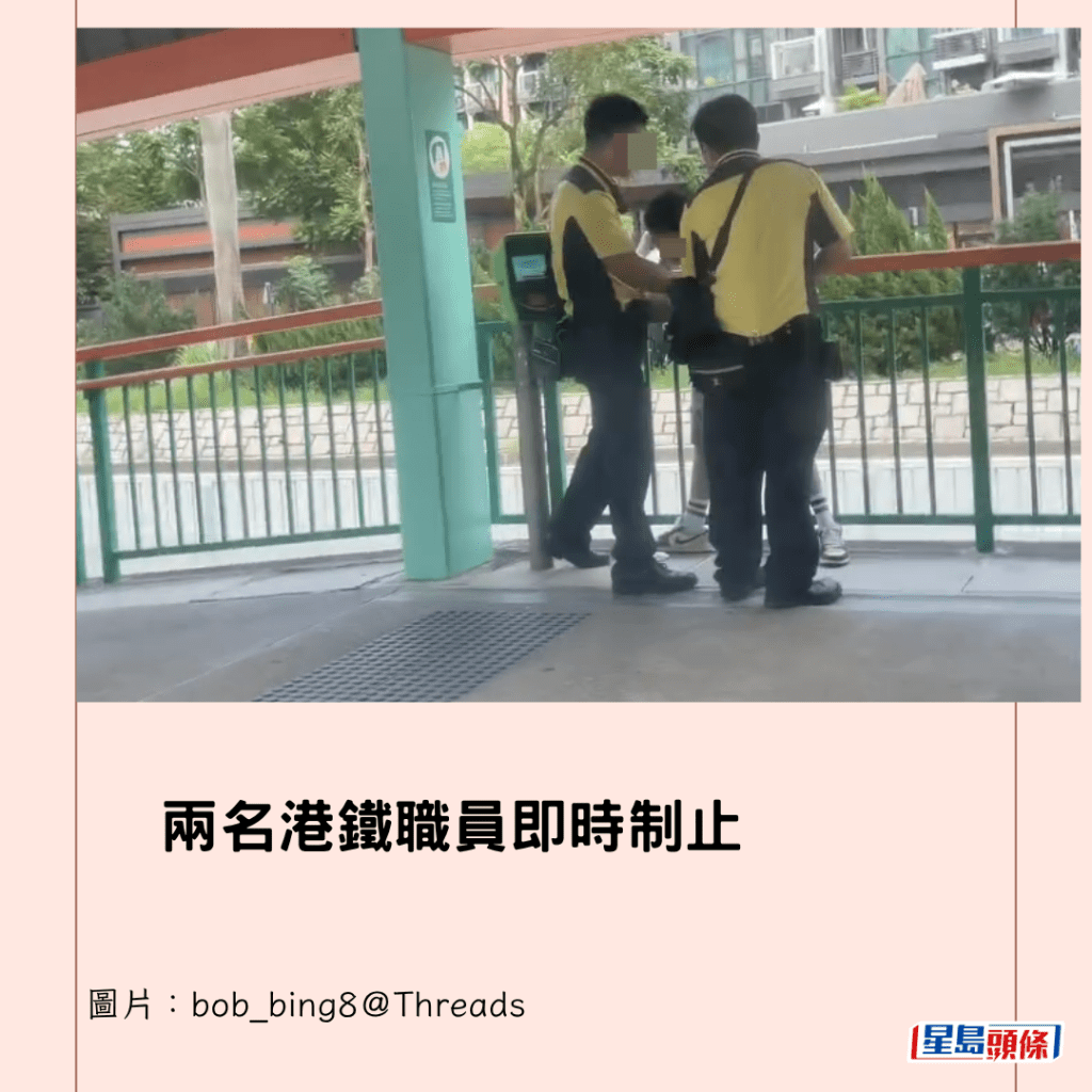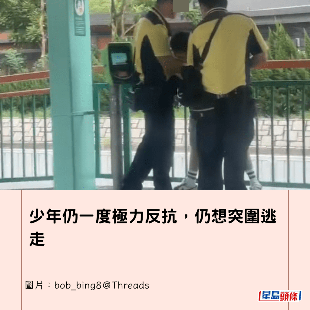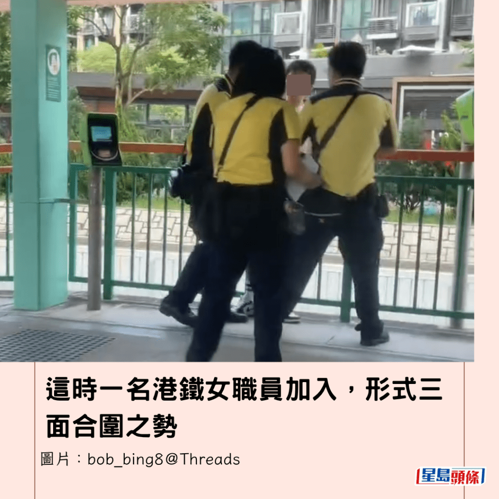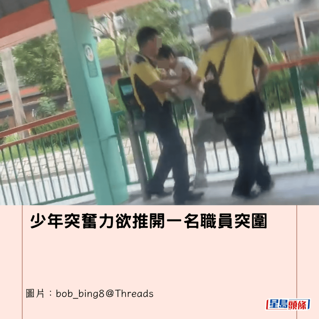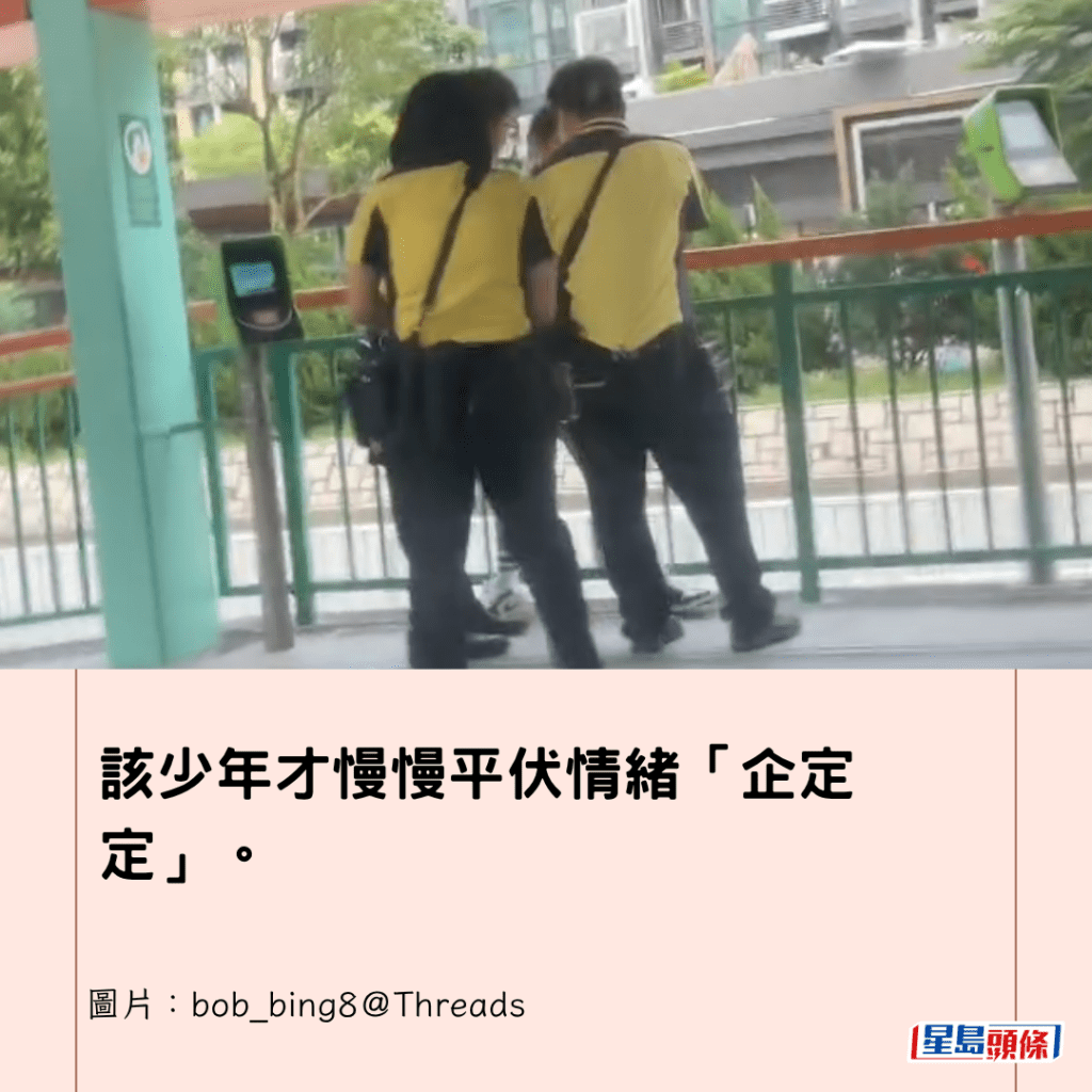 這時一名港鐵女職員加入,形式三面合圍之勢,該少年才慢慢平伏情緒「企定定」。