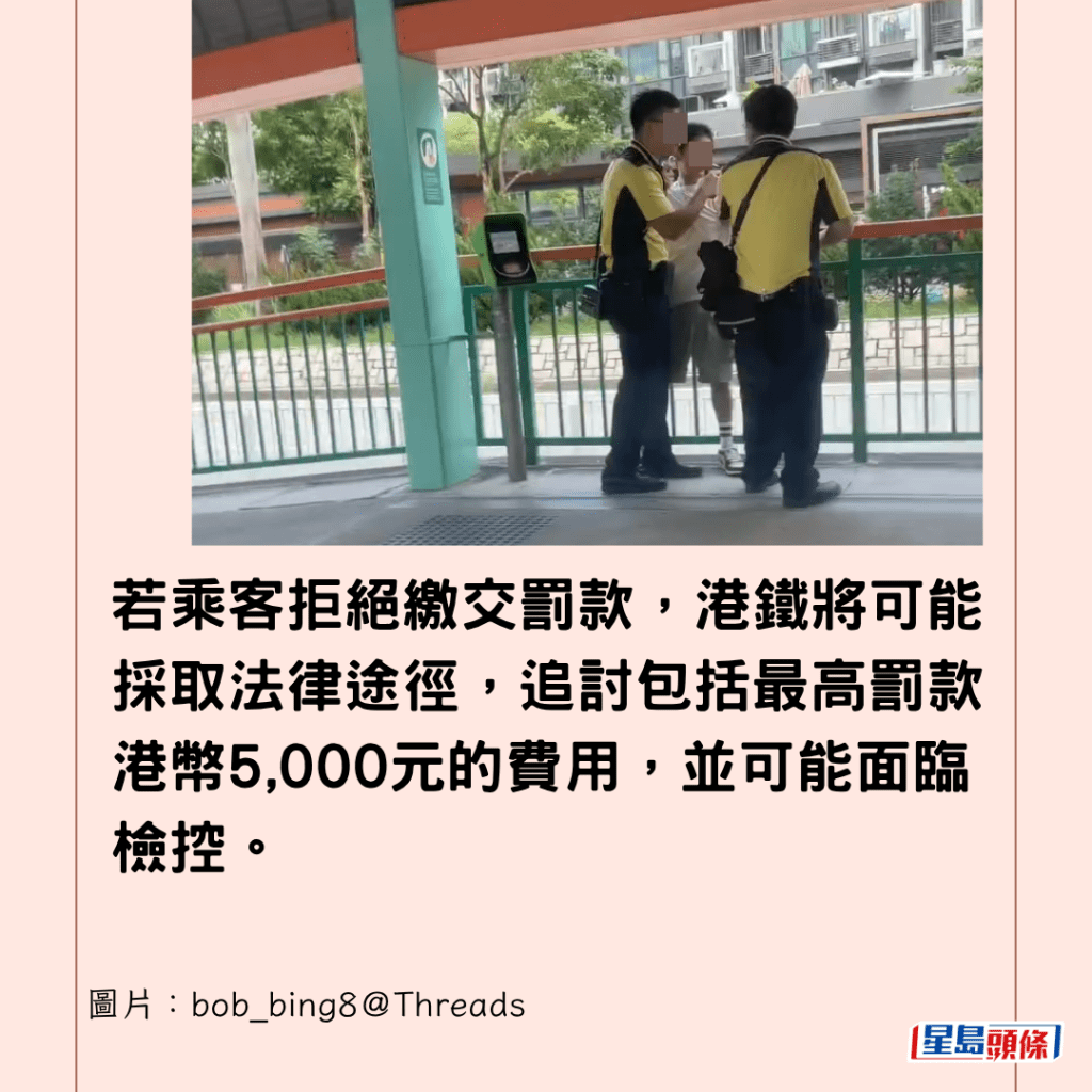 職員根據港鐵附例向他發出擬檢控通知書,並會將個案交予公司法律部處理。