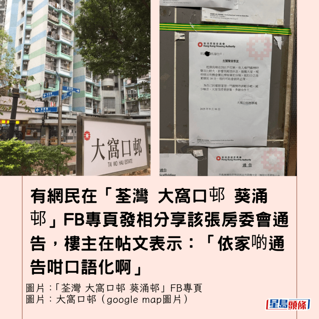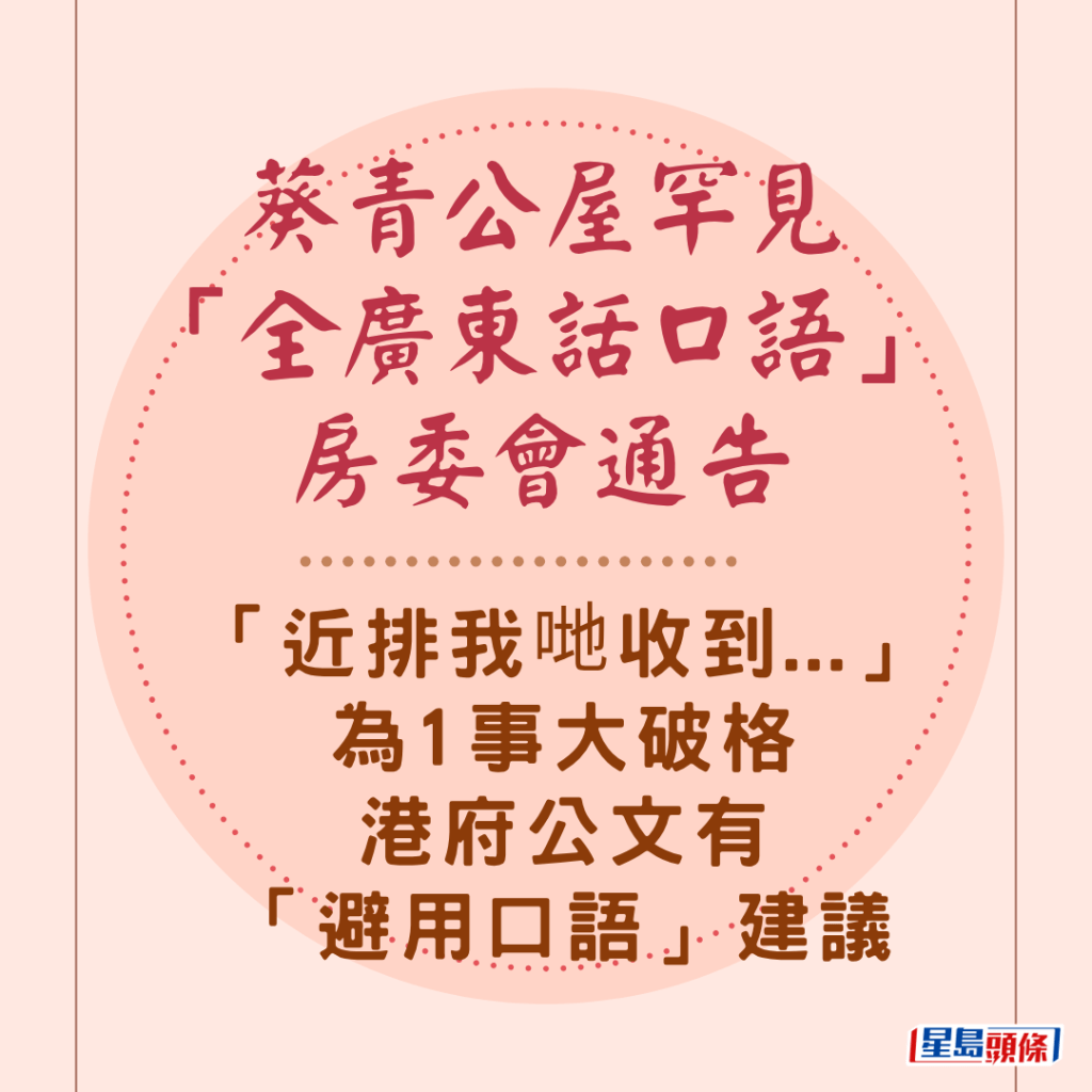 葵青公屋罕見「全廣東話口語」房委會通告 「近排我哋收到…」為1事大破格 港府公文有「避用口語」建議↓↓↓↓