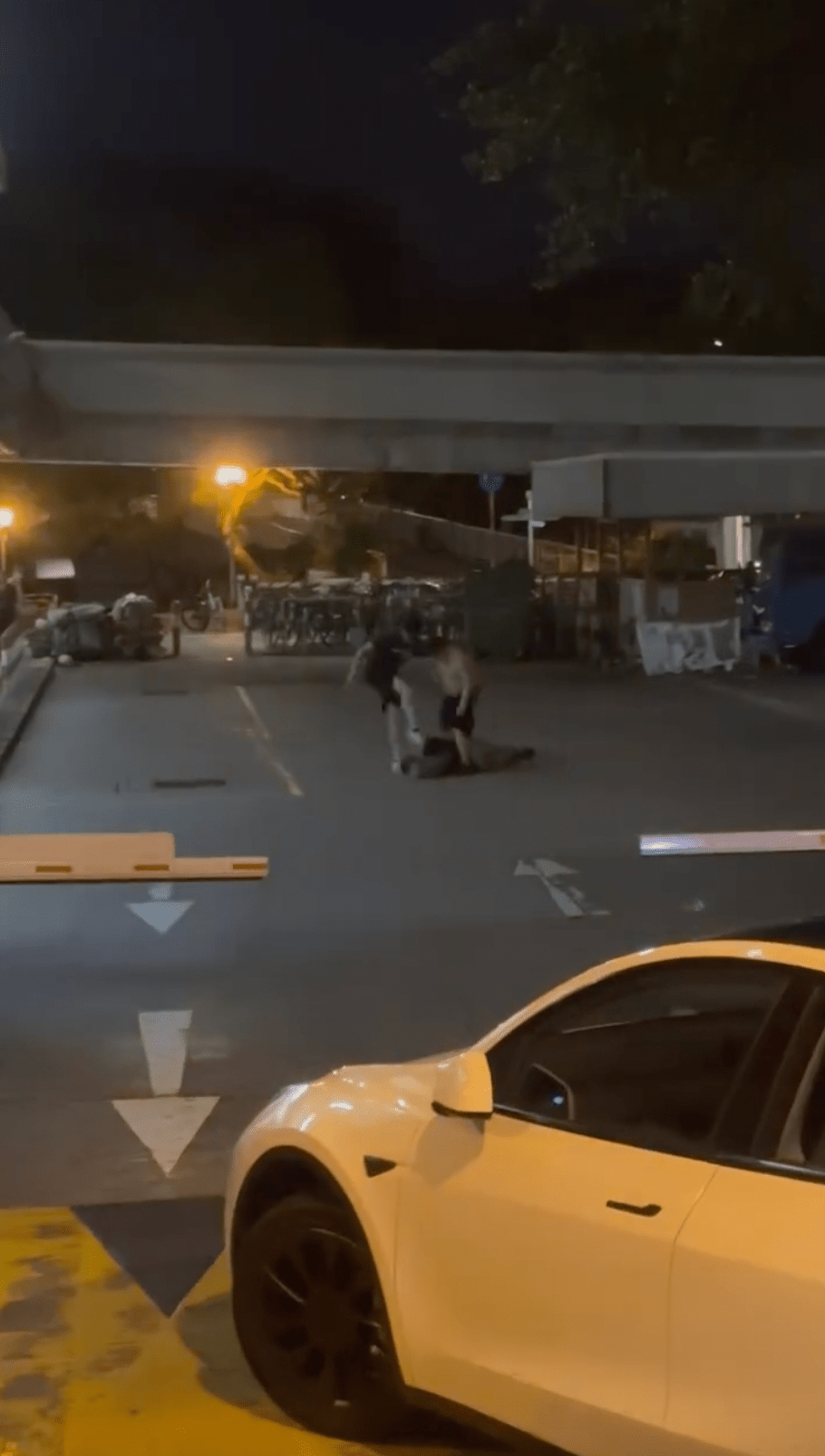 然而片段後半急轉直下,鏡頭轉至停車場內,場面已變成二打一。疑似早前受壓的年輕男召來外援,一同將中年漢踢至地上並圍毆其頭部,場面驚心動魄。有網民留言譴責:「這樣踢頭法隨時搞出人命」,亦有人諷刺事件情節如「劇情峰迴路轉」。