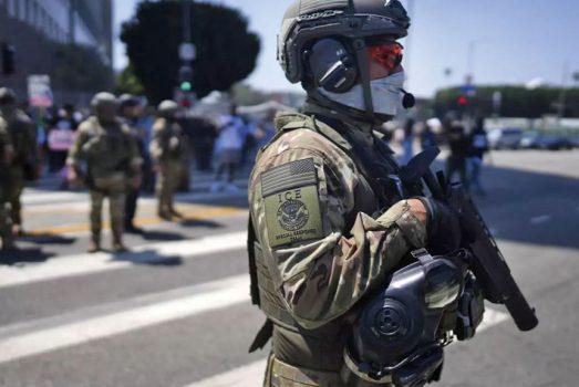6月,一名聯邦探員在洛杉磯市中心的大都會拘留中心外站崗。美聯社