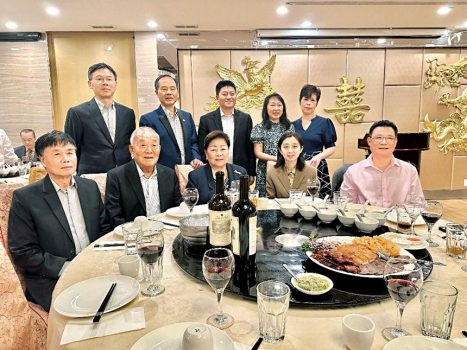 梅國棟理事長(前右1)設答謝宴,張宜琪副總領事(前右2)、張軍鵬領事(後中)、王匡廷領事(後左1)與梅氏總公所主席浩森(前左1)、梅施美英(前中)暨同仁合影。 梁敏與攝