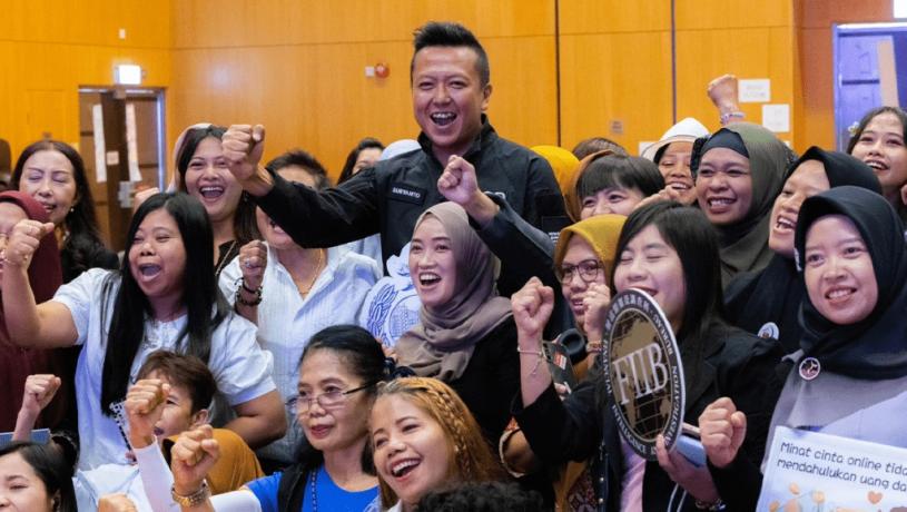 展超Sir化身為防騙大使,出席印尼傭工防罪講座時,用印尼語呼籲印傭提防騙子。香港警察fb圖片