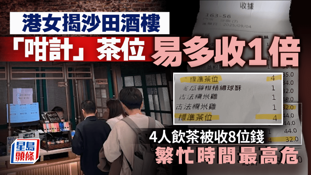 同場加映:4人飲茶被收8位錢 港女揭沙田酒樓「咁計」茶位易多收1倍 繁忙時間最高危↓↓↓↓