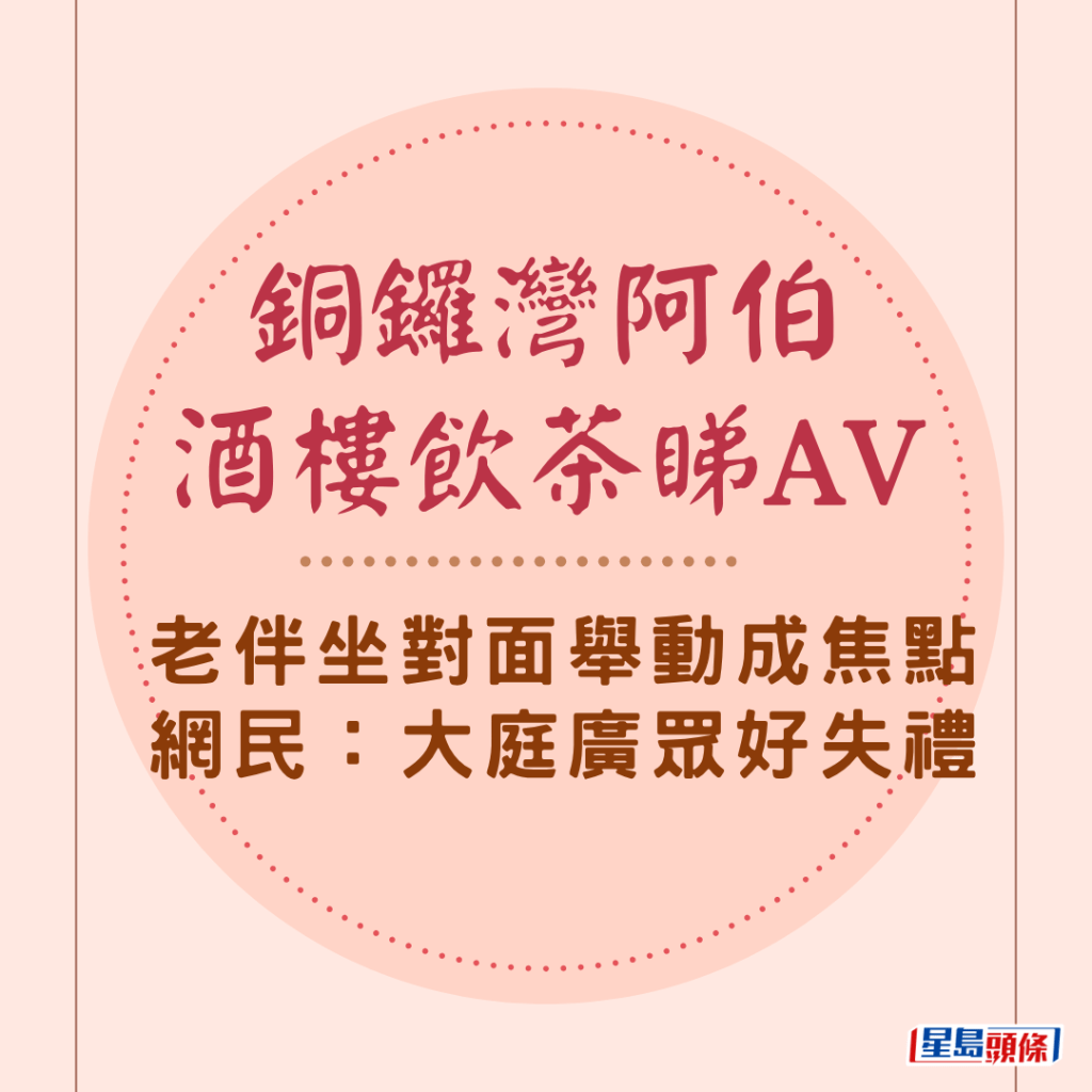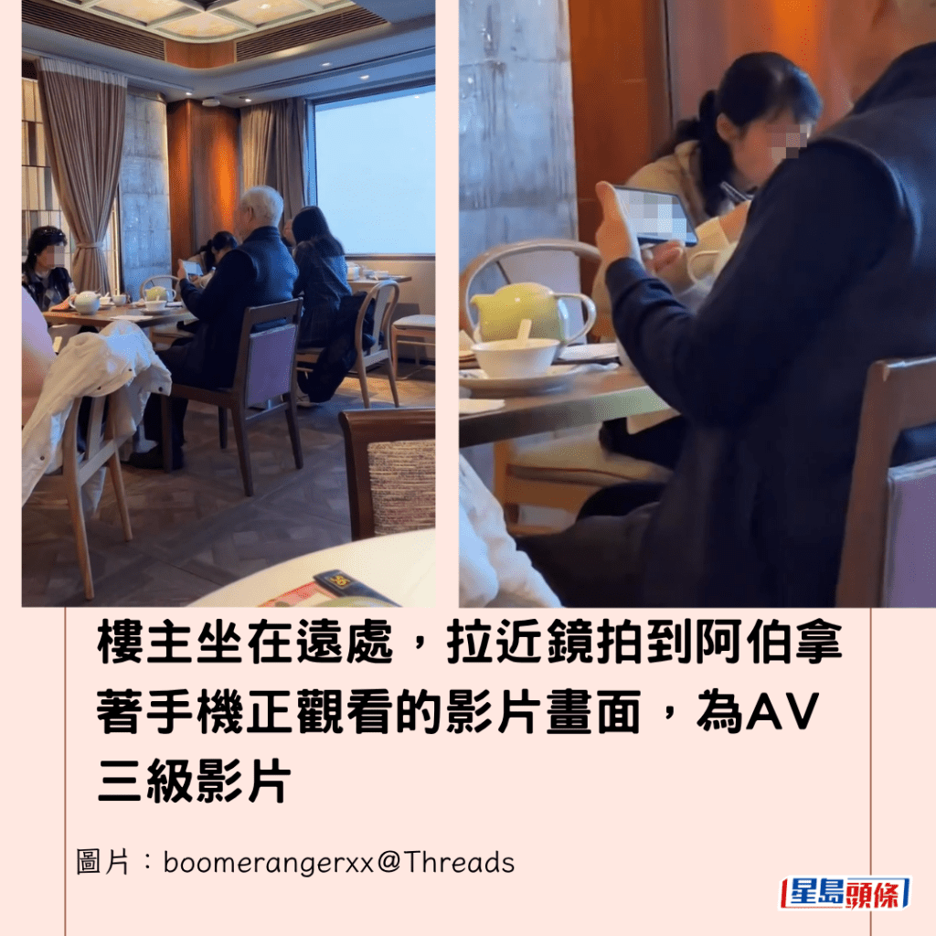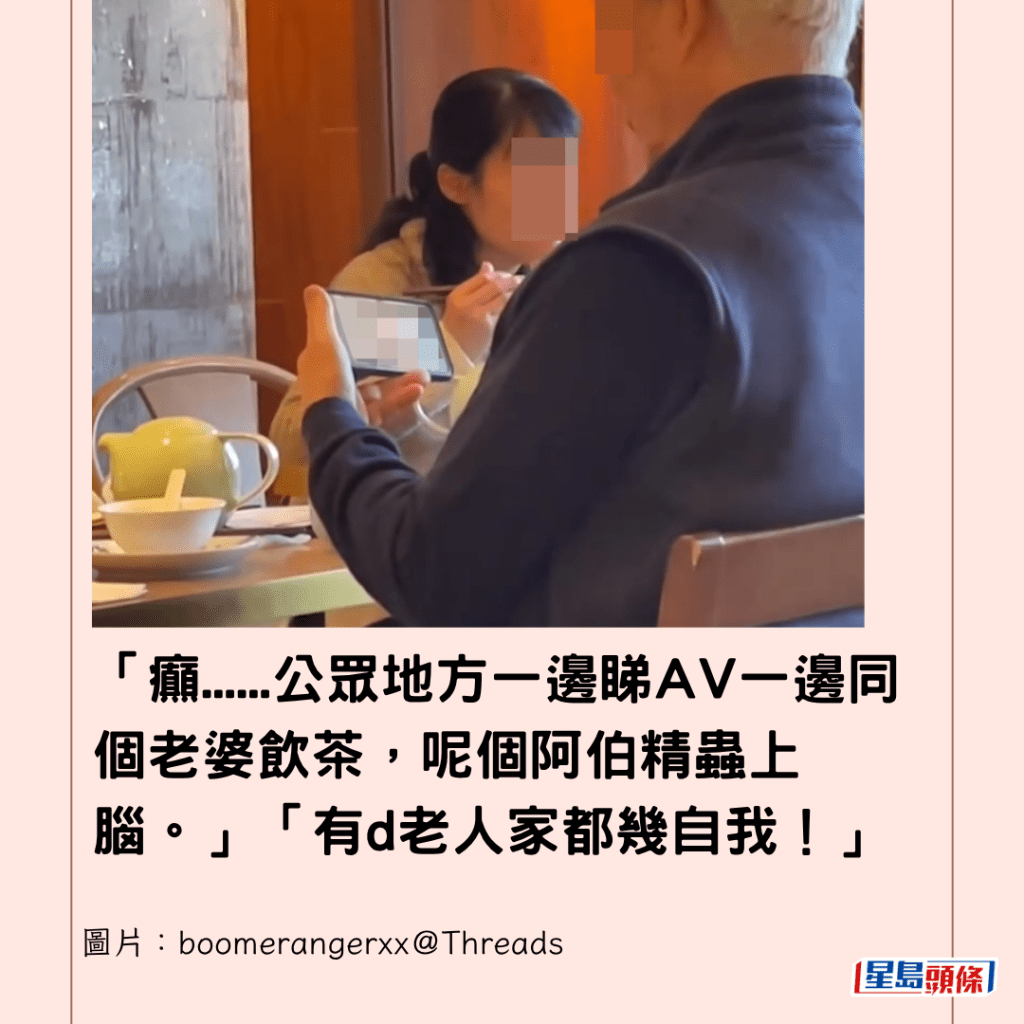 銅鑼灣阿伯酒樓飲茶睇AV 老伴坐對面舉動成焦點 網民:大庭廣眾好失禮↓↓↓↓