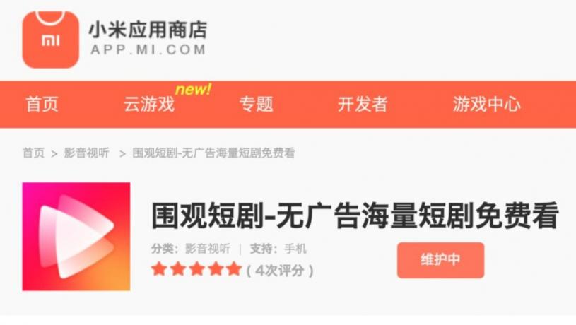 又一科技巨頭殺入短劇賽道。小米公司近日在旗下手機應用商城正式上線獨立短劇APP「圍觀短劇」,並打出「無廣告海量短劇免費看」的賣點,目前下載量已破兩萬人次。此前阿里巴巴、拼多多等電商巨頭已早早入局。