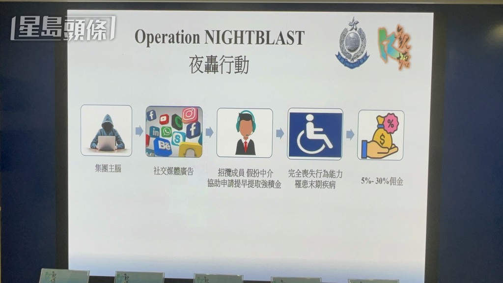 調查顯示,有犯罪集團主腦假冒中介,透過社交媒體上的廣告,聲稱可以安排被捕人提早取回他們的強積金供款。案中所謂的中介會協助被捕人向強積金受托人公司,提交虛假的醫生證明,聲稱「完全喪失行為能力」或「罹患末期疾病」。被捕人只需將他們的個人資料,並在申請表格上以電子方式簽名,再以社交平台交予這些所謂的中介,過程中被捕人卻從未與中介見面。而涉案的虛假醫生證明,全部是偽造不同醫生的醫生紙。