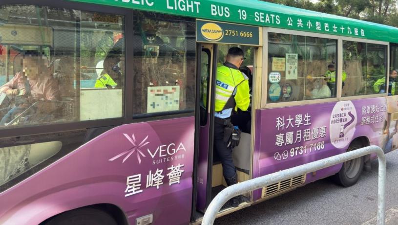 警方東九龍總區交通部執行及管制組特遣隊人員,今日(24日)在東九龍區進行交通執法行動,打擊公共服務車輛相關的交通違例事項,行動主要針對的違例「沒有穩妥繫上安全帶」。行動中,警員喬裝為乘客登上公共小巴,人員發現31名乘客沒有穩妥繫上安全帶,之後將會向相關違例人士發出傳票。