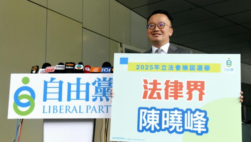 立法會換屆選舉提名期已展開,各政黨陸續公布參選名單。自由黨黨魁張宇人及主席邵家輝於今日(27日)公布該黨最新安排,張宇人表示,自由黨將增派陳曉峰參選法律界,即該黨會有6人參選。有傳言指陳曉峰或會出戰選委界,陳澄清指是謠言,自己一直醉心法律界,是次參選將致力於解決業界長期面臨的困境。