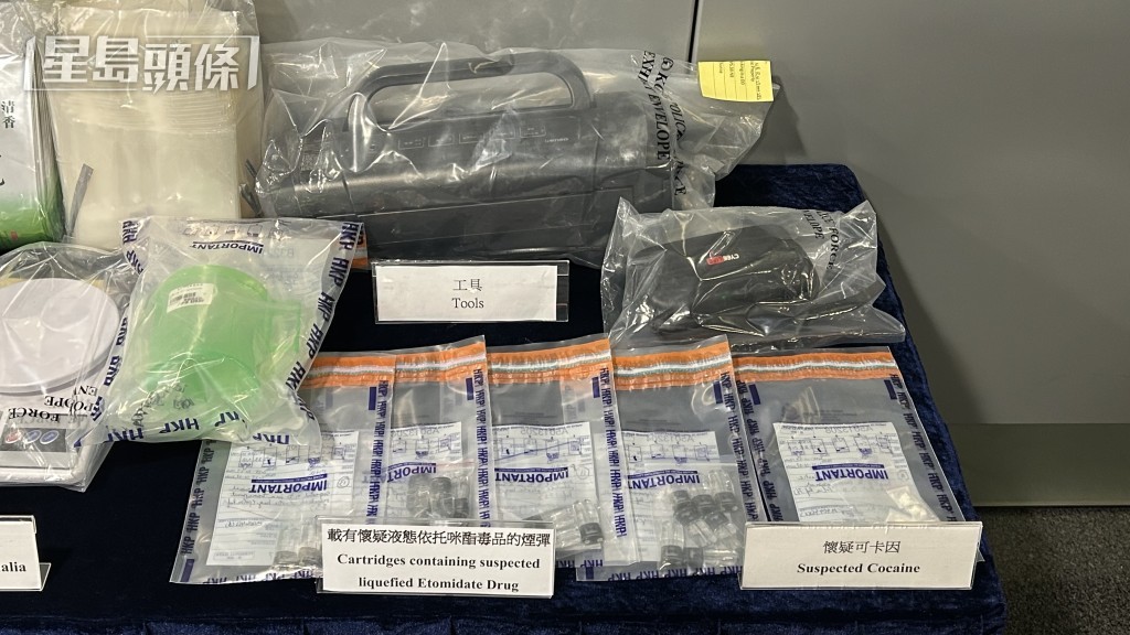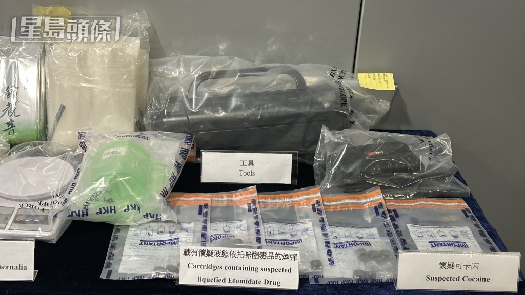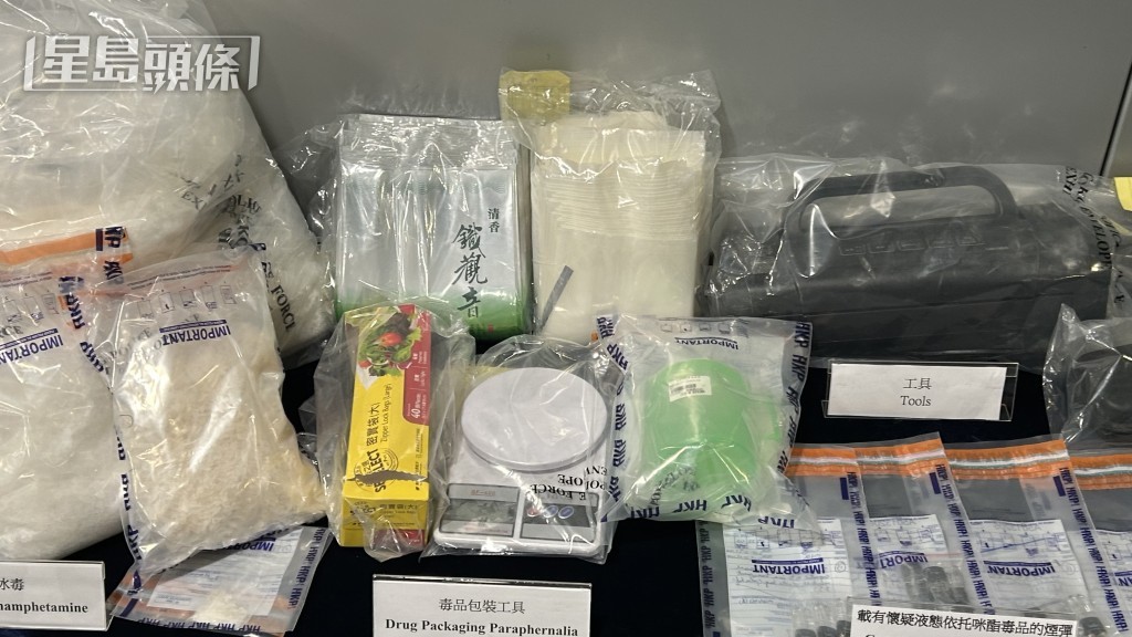 昨日下午,毒品調查科探員在馬頭圍道一劏房單位外截查一名男子,並在他身上檢獲3克冰毒,並隨即將他押返單位搜查,並在單位內檢獲共約36公斤冰毒,以及大量的毒品包裝工具。人員其後亦在該名男子停泊於附近的車輛內,檢獲18粒依托米酯煙彈和約4克可卡因。調查顯示,涉事劏房的毒品儲存倉運作不久,警方相信已成功搗截涉案整批毒品流入市場。