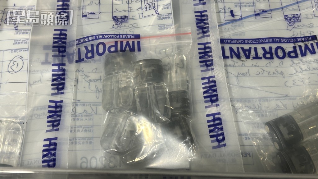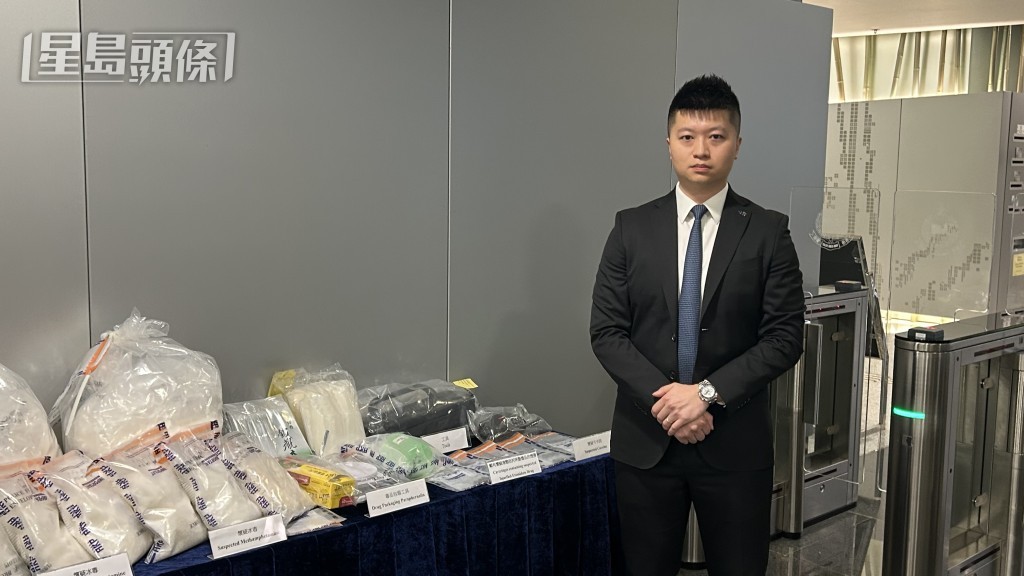 警方毒品調查科高級督察鄧駿穎展示證物。蔡楚輝攝