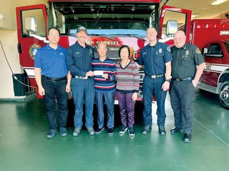 日前,在聖蓋博市市議員吳程遠(John Wu)的陪同下,譚瑞進與夫人親赴聖蓋博市消防局,向多位當時參與救援的消防員表達誠摯謝意,並親自捐款給消防局,以感念他們的英勇與專業。