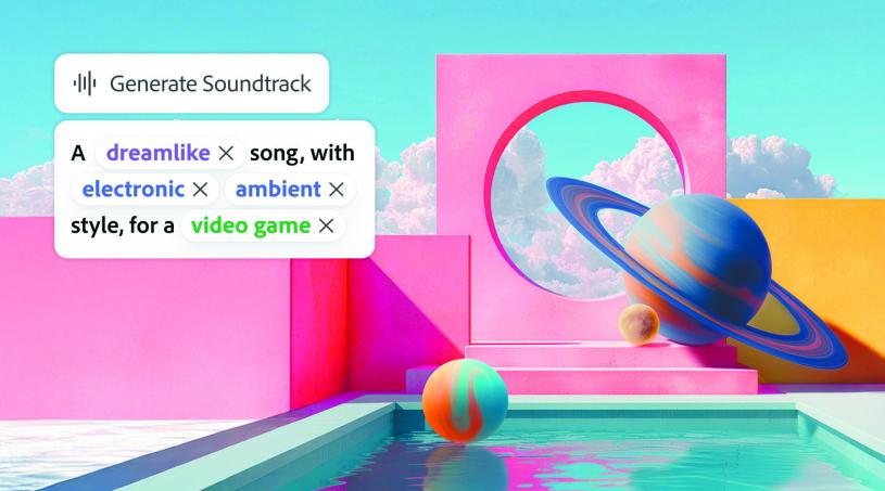此外,Firefly還讓用戶免除人工配音和配樂的麻煩。Adobe新推出的Generate Soundtrack(公開測試版),是一款由Firefly Audio Model驅動的AI音樂生成工具,可以自選音樂風格,或上傳任何影片片段,讓系統自動匹配音樂風格,並將節奏和時間軸精準同步到畫面上。