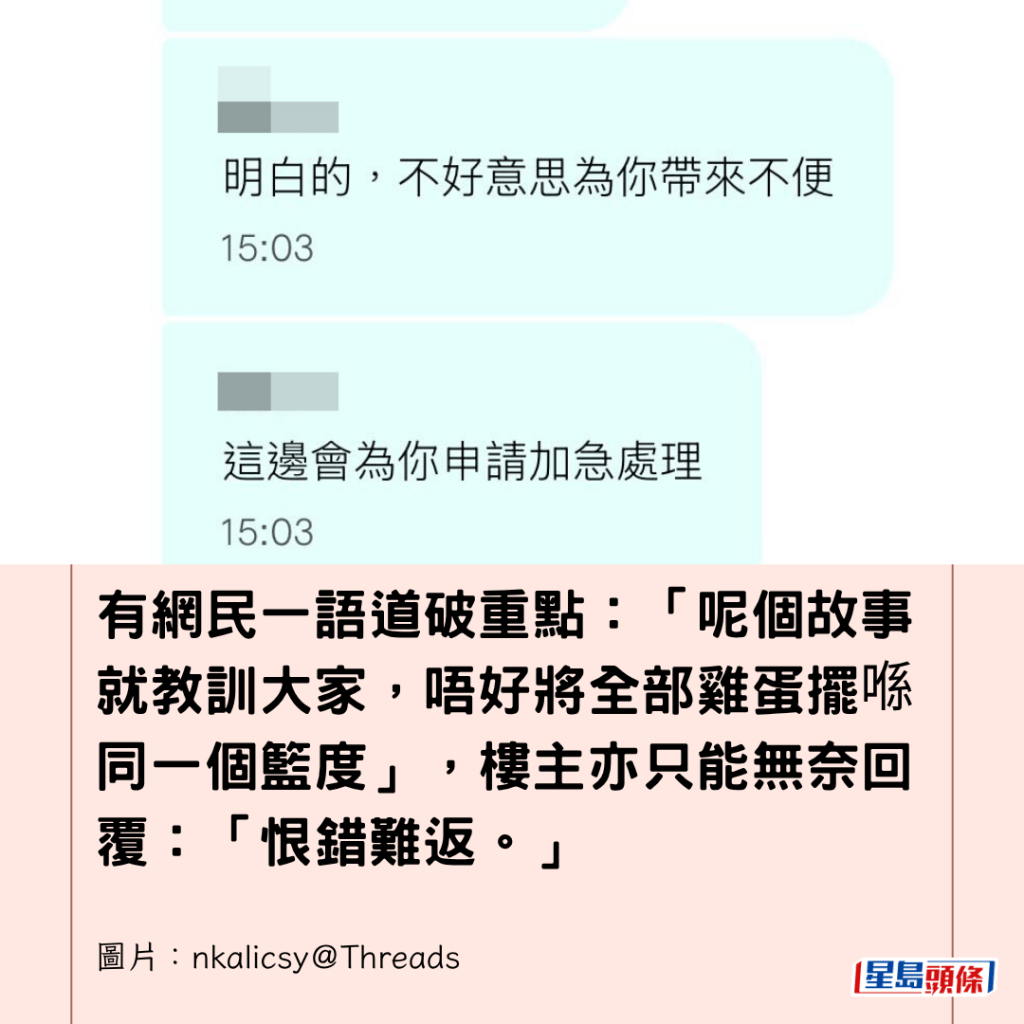 網民:唔好將全部雞蛋 擺喺同一個籃度