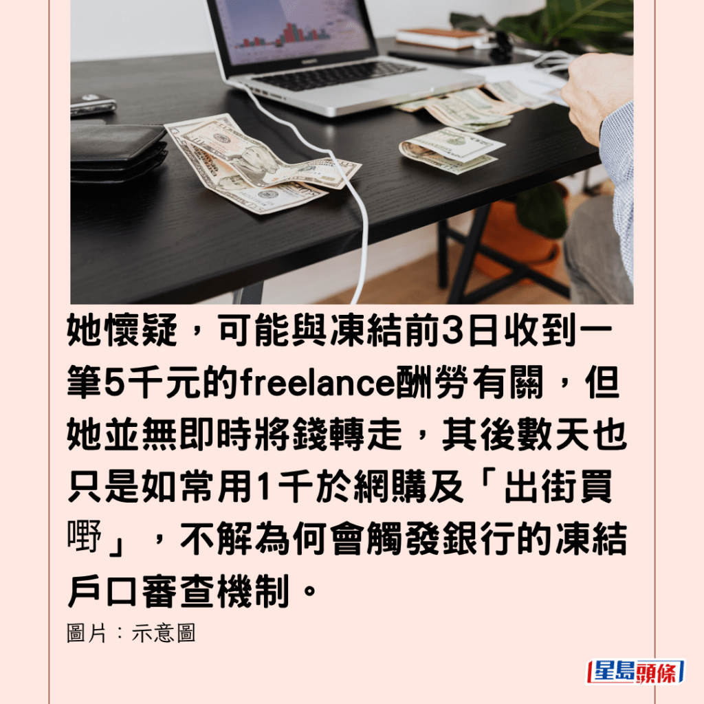 樓主憶述,事發當日下午戶口仍正常運作,到凌晨卻發現無法使用,向客服查詢才驚悉戶口已被凍結。她懷疑,可能與凍結前3日收到一筆5千元的freelance酬勞有關,但她並無即時將錢轉走,其後數天也只是如常用1千於網購及「出街買嘢」,不解為何會觸發銀行的凍結戶口審查機制。
