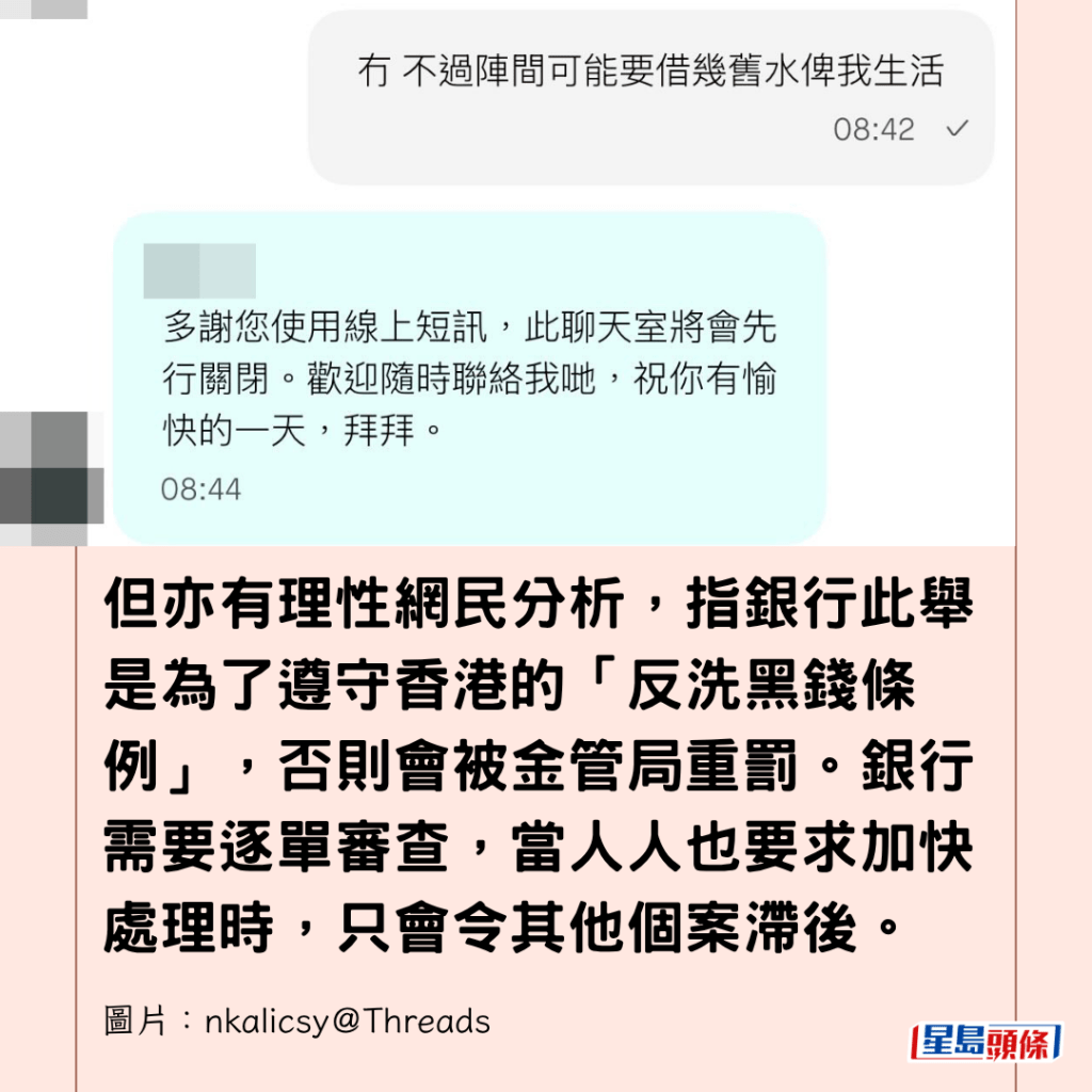 但亦有理性網民分析,指銀行此舉是為了遵守香港的「反洗黑錢條例」,否則會被金管局重罰。銀行需要逐單審查,當人人也要求加快處理時,只會令其他個案滯後。