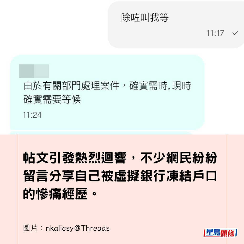 帖文引發熱烈迴響,不少網民紛紛留言分享自己被虛擬銀行凍結戶口的慘痛經歷。