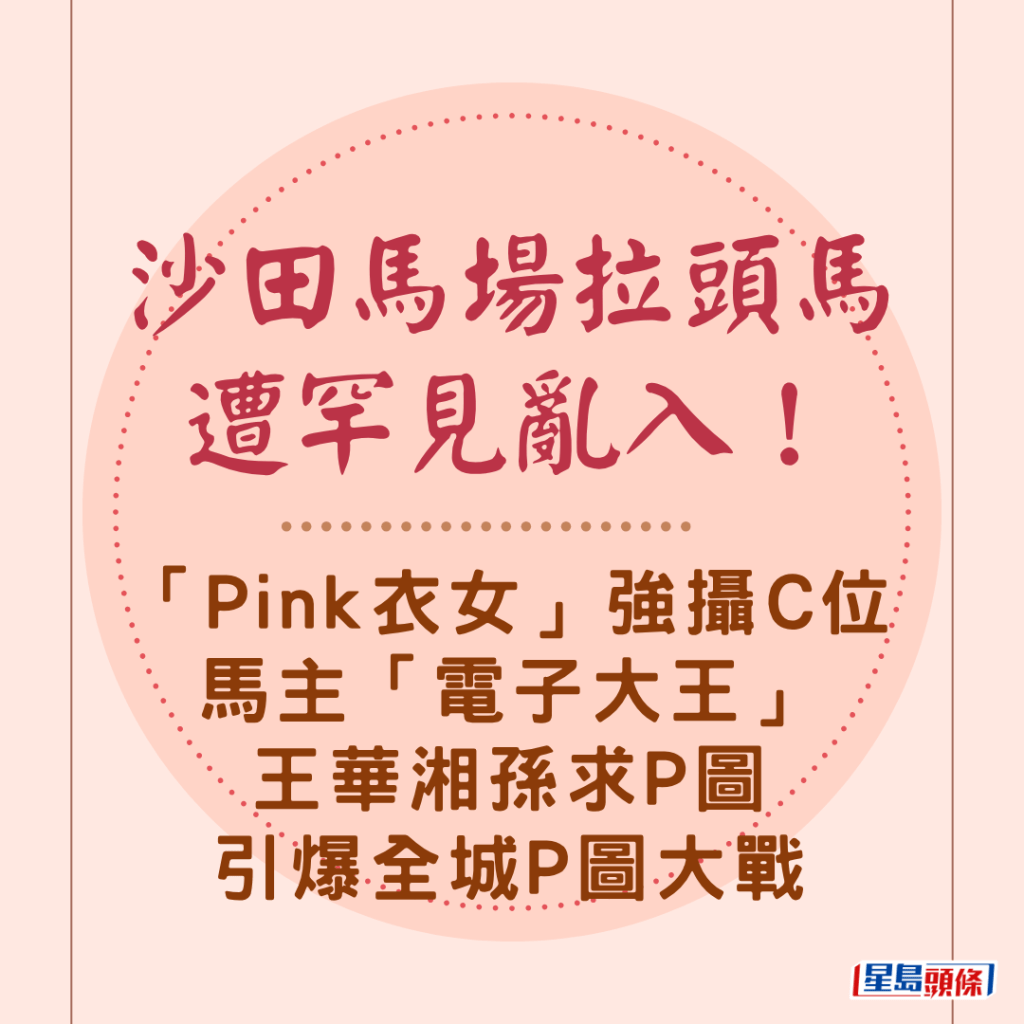 沙田馬場拉頭馬遭罕見亂入!「Pink衣女」強攝C位 馬主「電子大王」王華湘孫求P圖 引爆全城P圖大戰↓↓↓↓