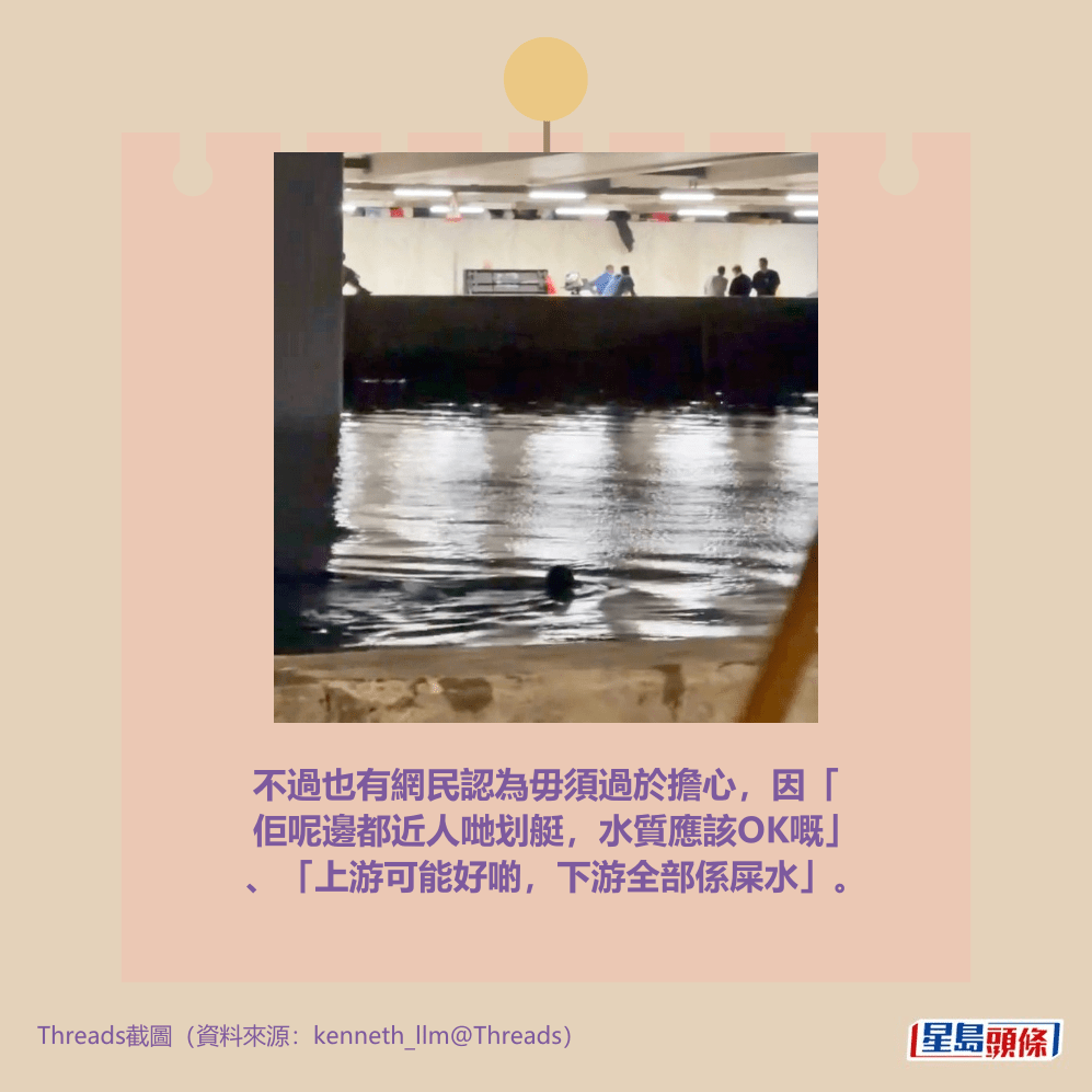 不過也有網民認為毋須過於擔心,因「佢呢邊都近人哋划艇,水質應該OK嘅」、「上游可能好啲,下游全部係屎水」。
