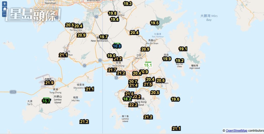 今晚市區最低氣溫約15度,新界再低一兩度,整體降幅達6至7度。預計低溫天氣將持續一至兩天。天文台圖片