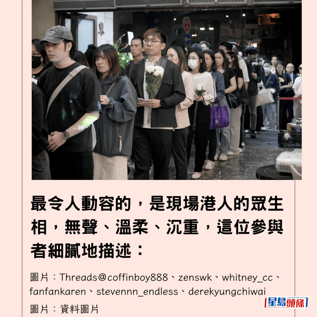 最令人動容的,是現場港人的眾生相,無聲、溫柔、沉重,這位參與者細膩地描述: