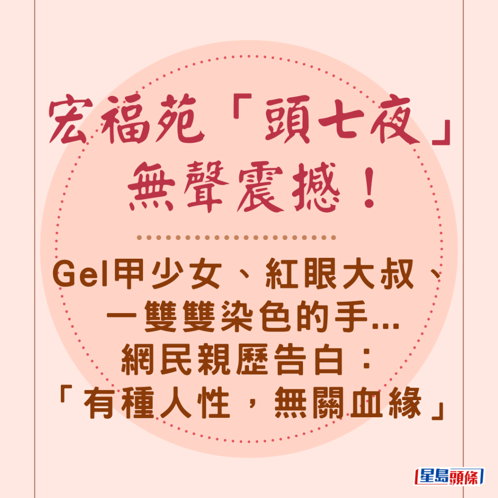 宏福苑「頭七夜」無聲震撼!Gel甲少女、紅眼大叔、一雙雙染色的手…網民親歷告白:「有種人性,無關血緣」↓↓↓↓