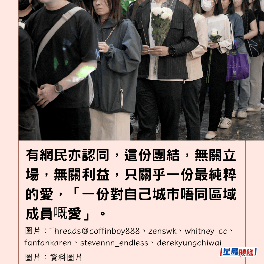 有網民亦認同,這份團結,無關立場,無關利益,只關乎一份最純粹的愛,「一份對自己城市唔同區域成員嘅愛」。