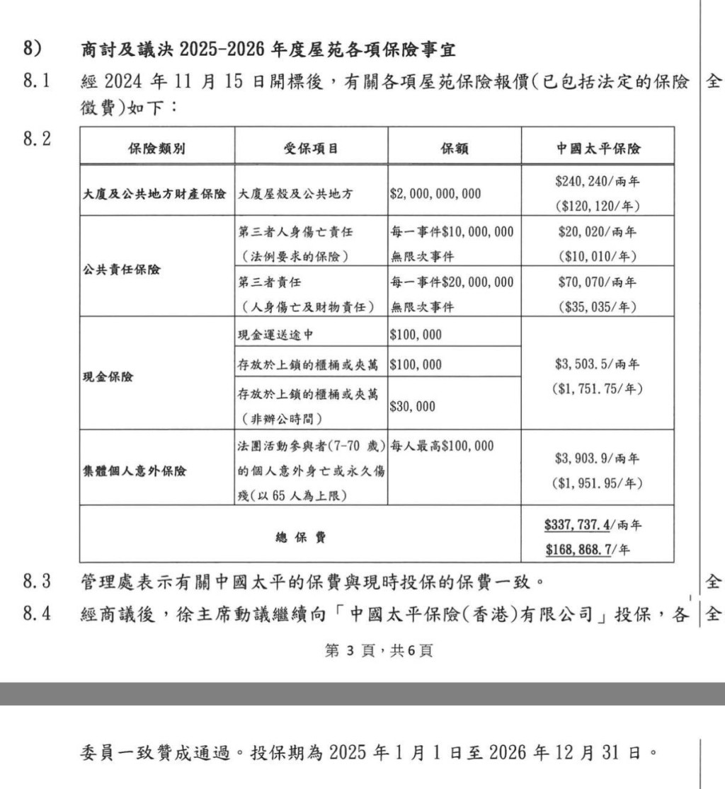 另一方面,承保該屋苑維修工程項目的中國太平保險(香港)(下稱「太平香港」)宣布,日前已完成火災事故首批共9宗家居保險的賠付工作,合共支付賠款537.2萬元。